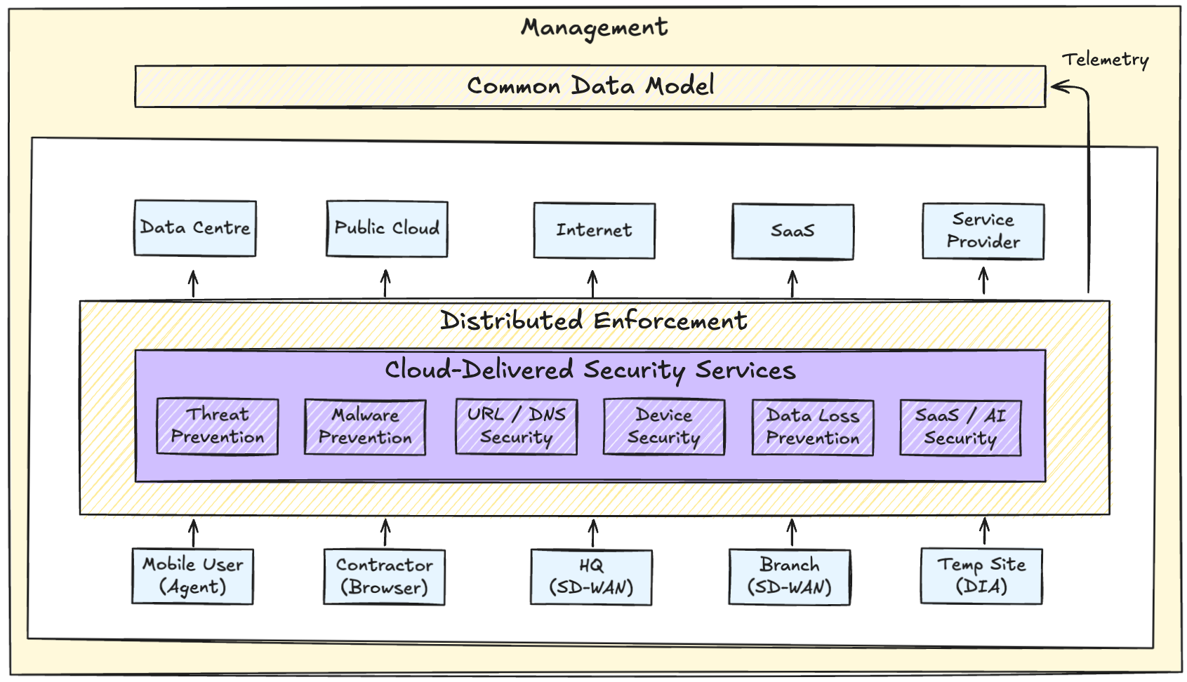 Cloud-Delivered Security Services address this by ensuring that inspection logic, threat intelligence, and detection models are shared and continuously updated, regardless of where traffic is enforced.